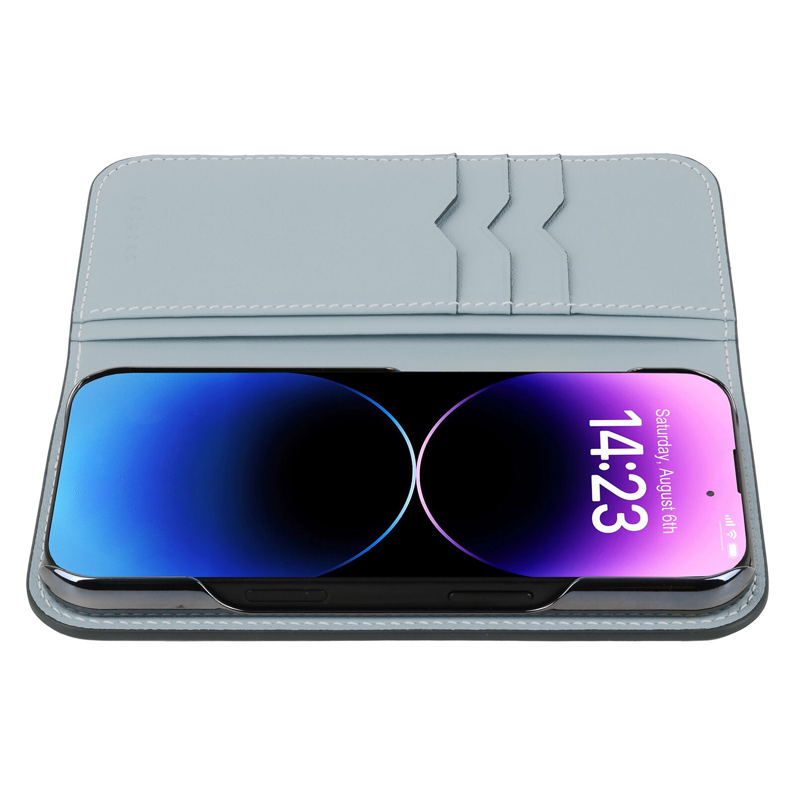【iPhone16シリーズ】手帳型ケース ブラック×フォグブルー