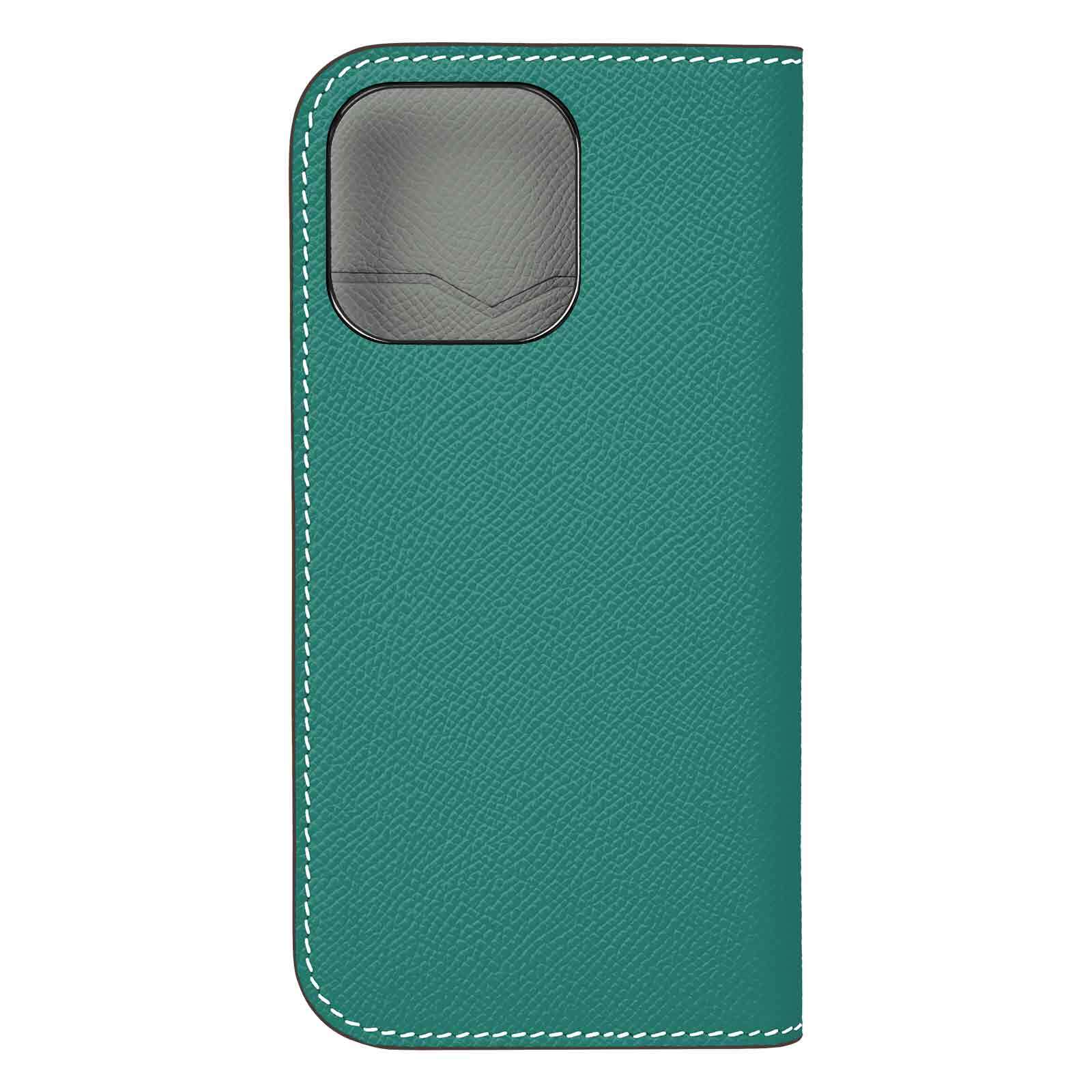 【iPhone16シリーズ】手帳型ケース エプソン エメラルド×スカイグレー