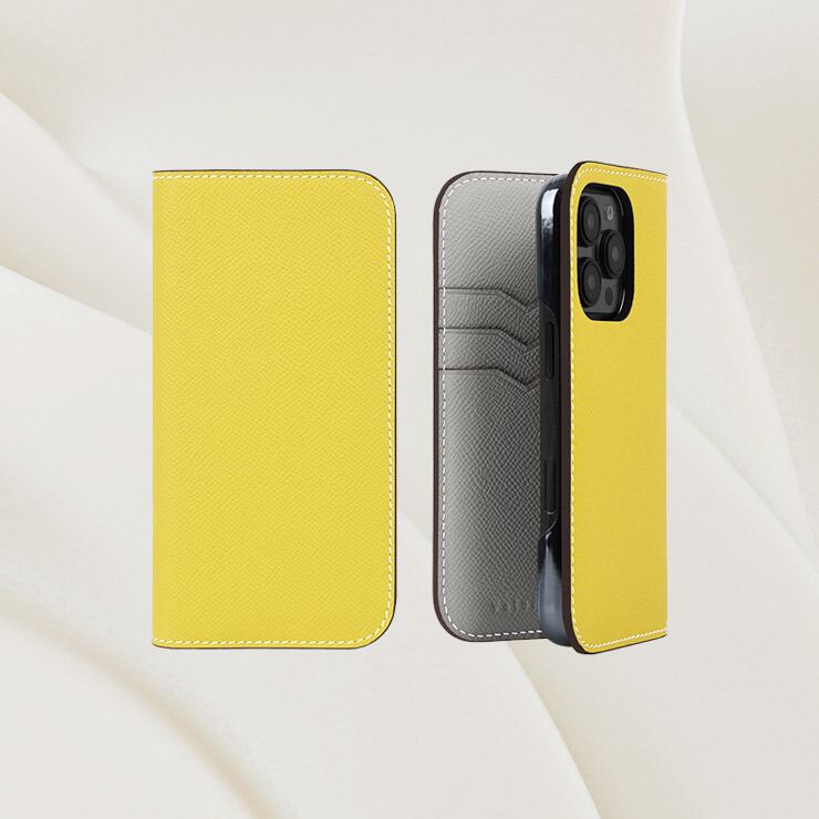 【iPhone16シリーズ】手帳型ケース エプソン イエロー×スカイグレー