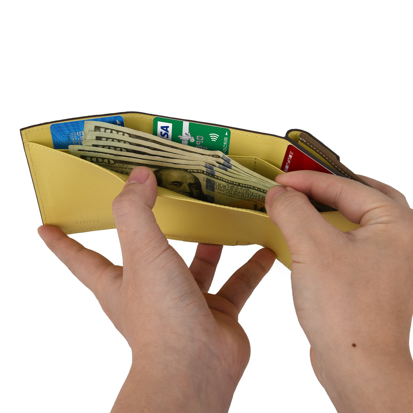 必要最低限の収納を可能にした機能的で計算されたデザインのコンパクトな三つ折り財布。 お札入れ、カード収納、コイン入れと十分な収納となっております。