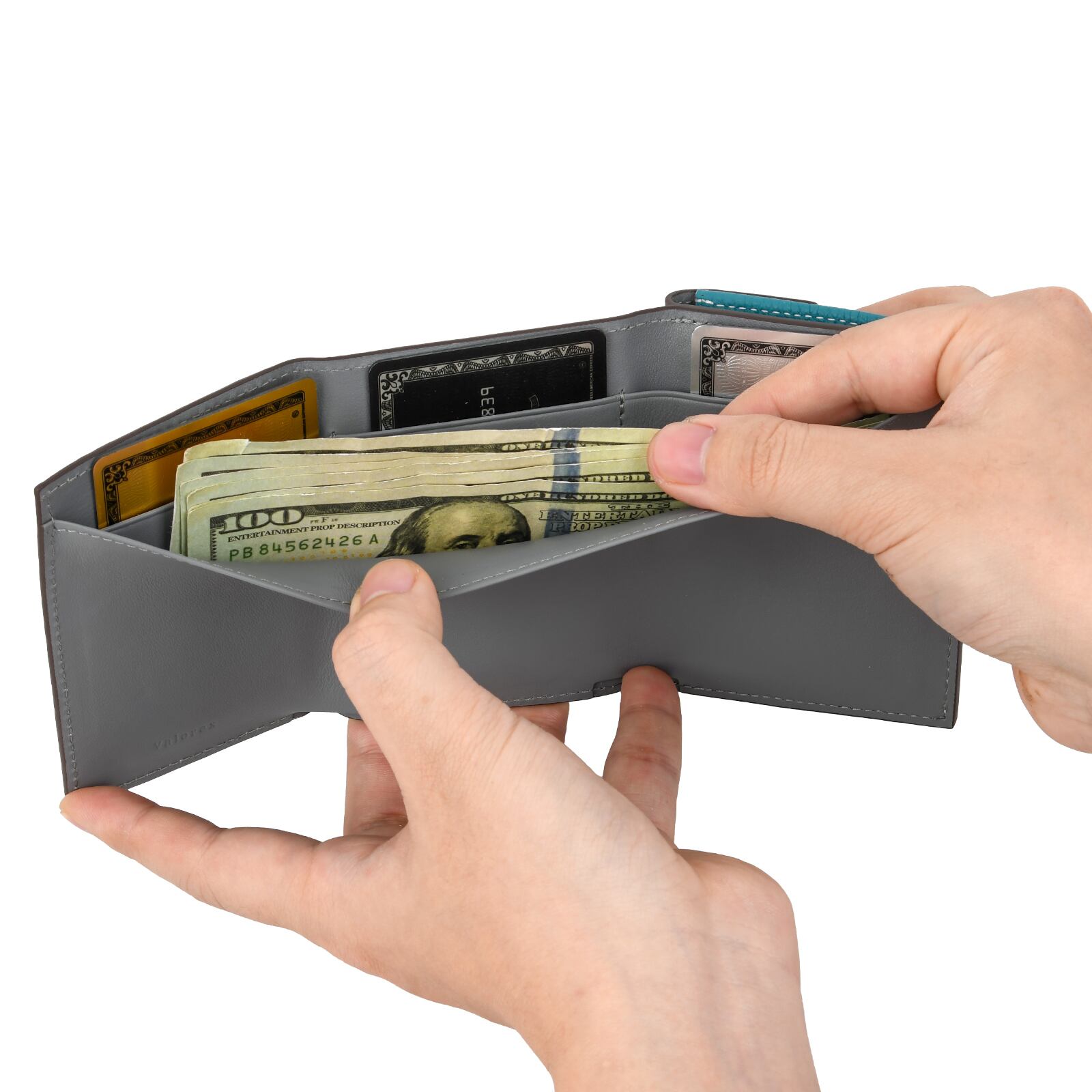 必要最低限の収納を可能にした機能的で計算されたデザインのコンパクトな三つ折り財布。 お札入れ、カード収納、コイン入れと十分な収納となっております。