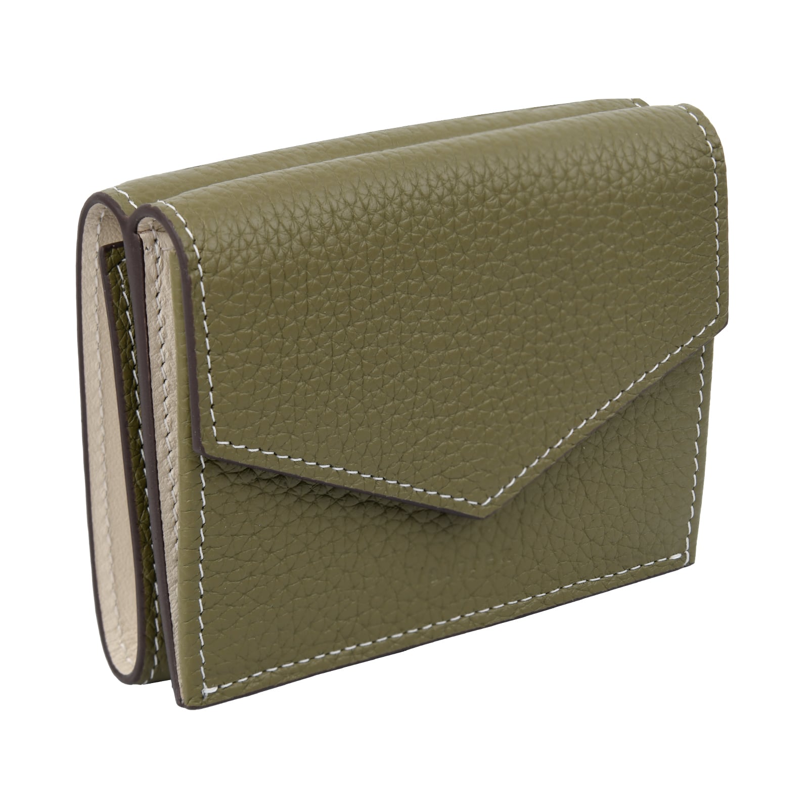 必要最低限の収納を可能にした機能的で計算されたデザインのコンパクトな三つ折り財布。 お札入れ、カード収納、コイン入れと十分な収納となっております。