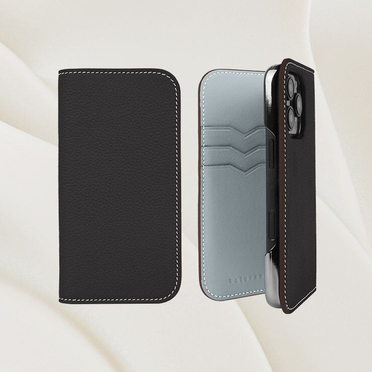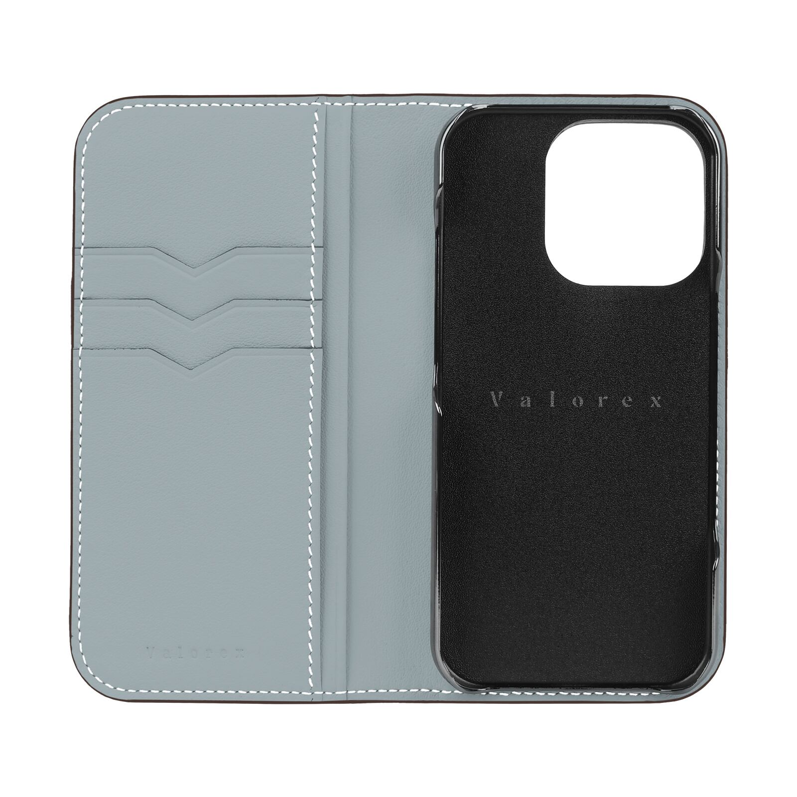 【iPhone16シリーズ】手帳型ケース トゴレザー グレー×フォグブルー