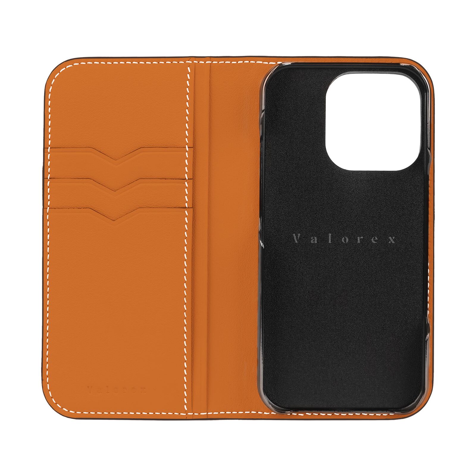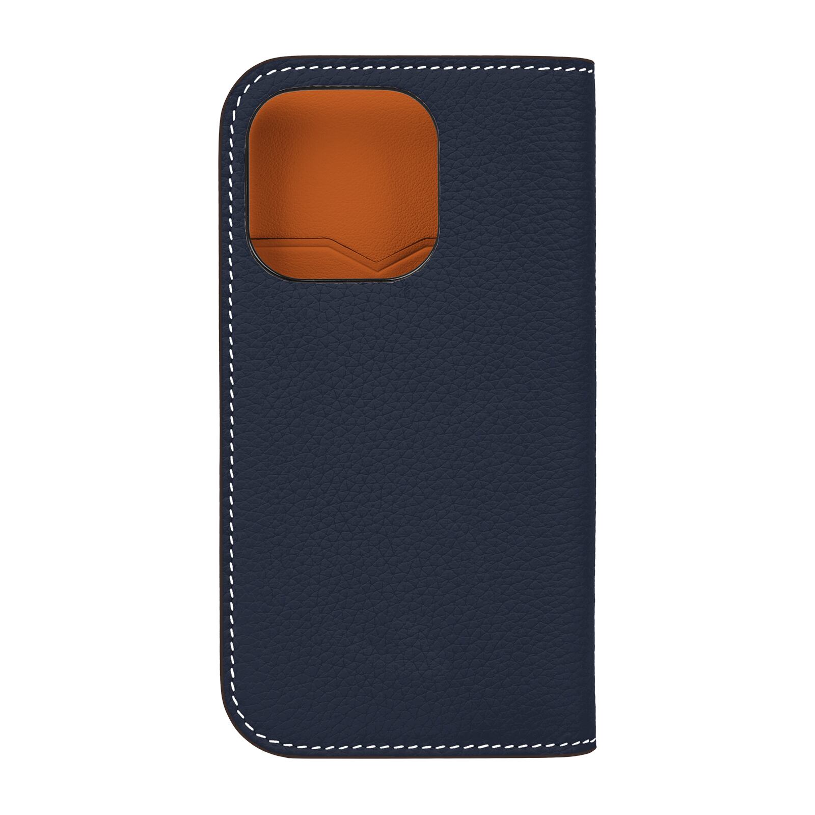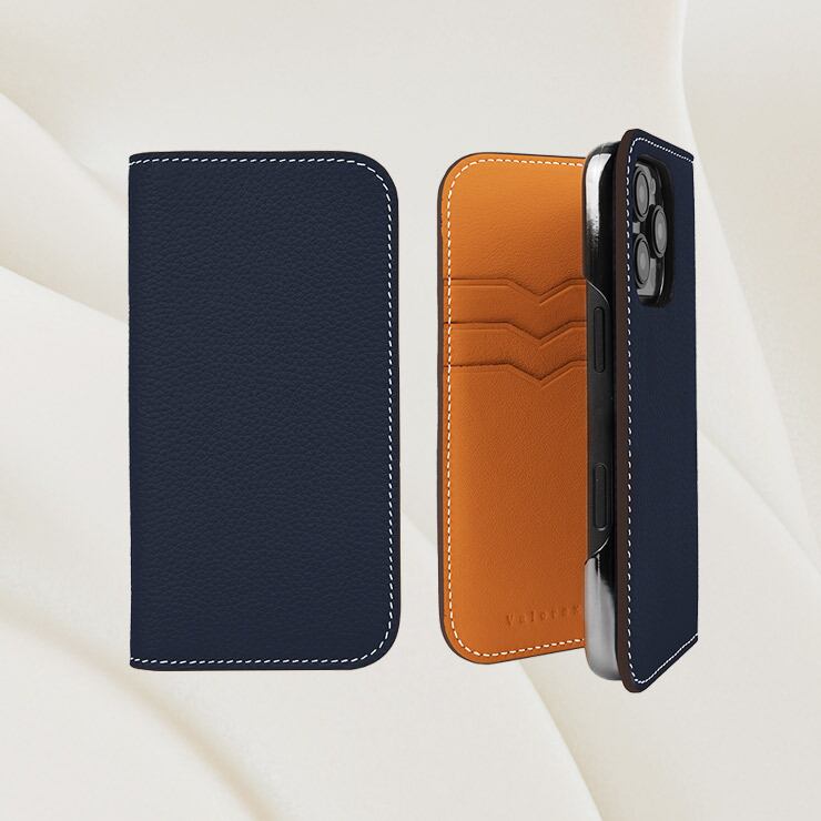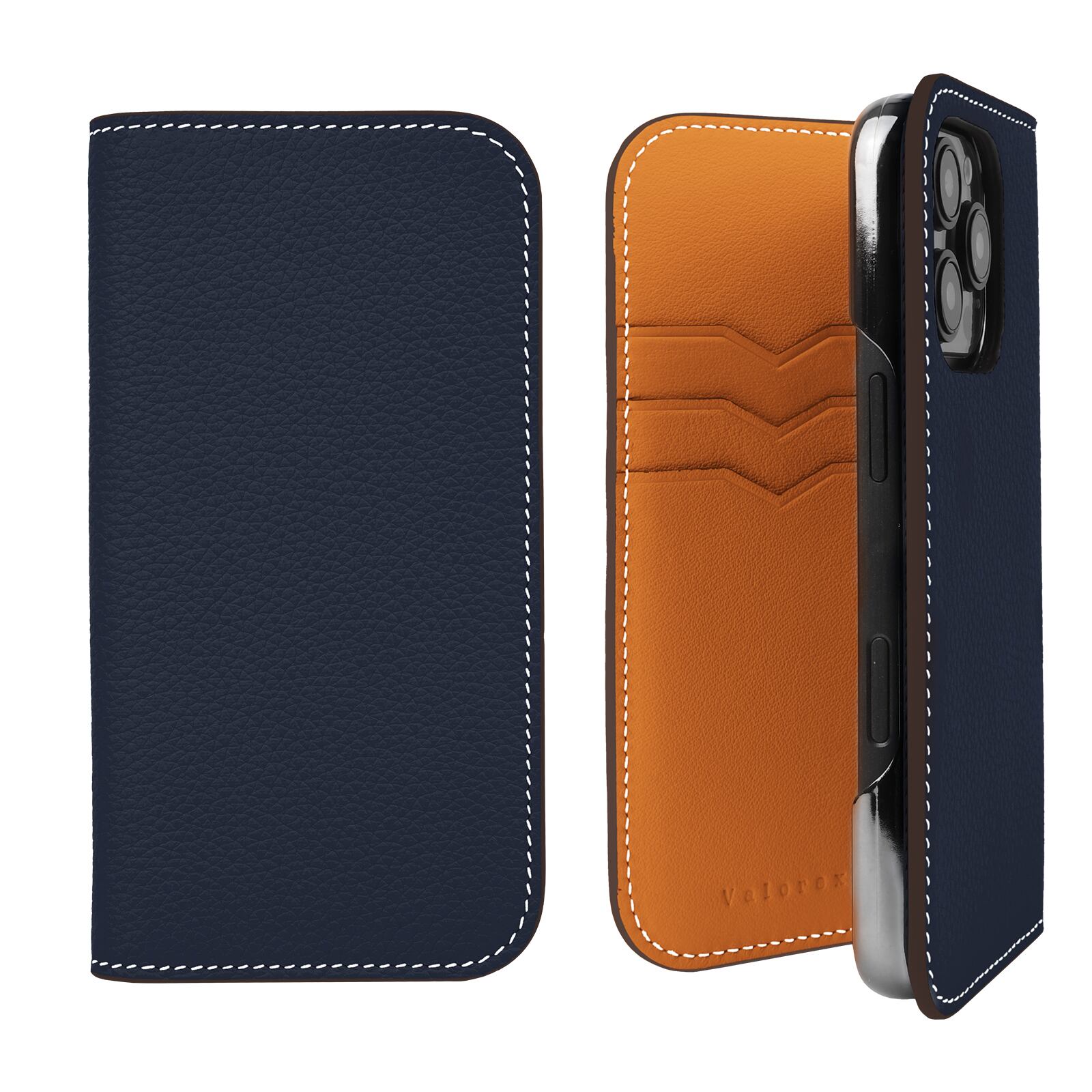 【iPhone16シリーズ】手帳型ケース トゴレザー ネイビー×オレンジ