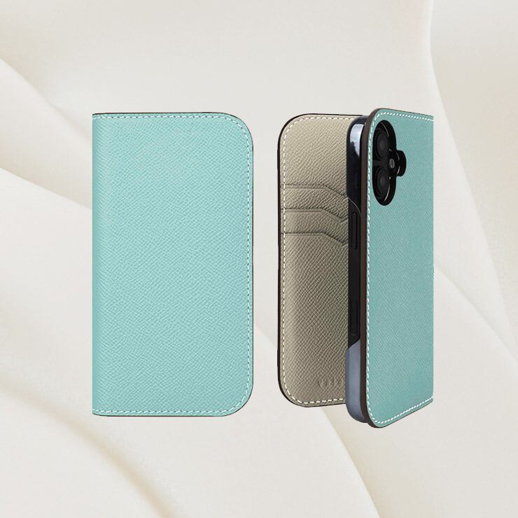 【iPhone16シリーズ】手帳型ケース エプソン スカイブルー×アイボリー