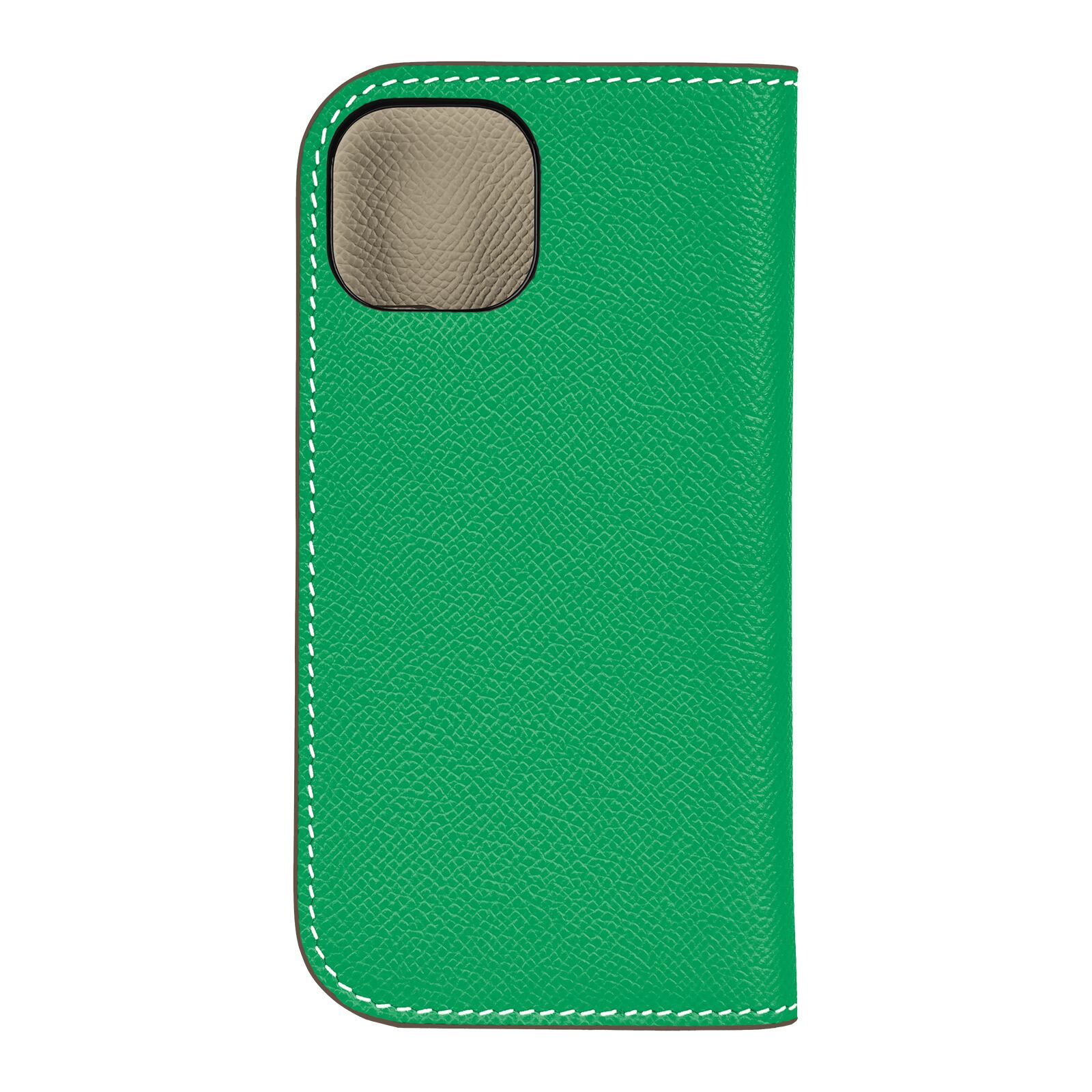 【iPhone15シリーズ】手帳型ケース エプソン グリーン×エクリュベージュ