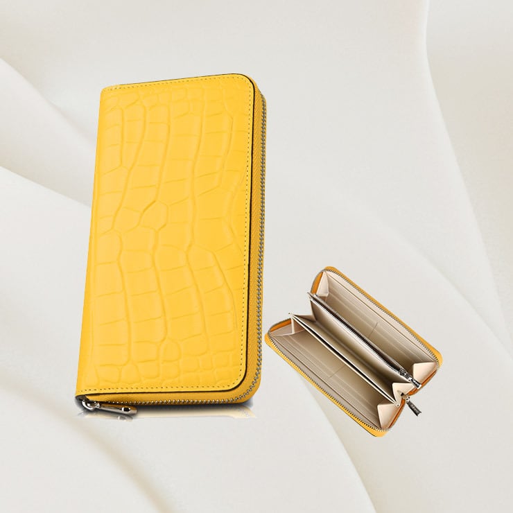 バイカラークロコダイル調長財布 イエロー×アイボリー