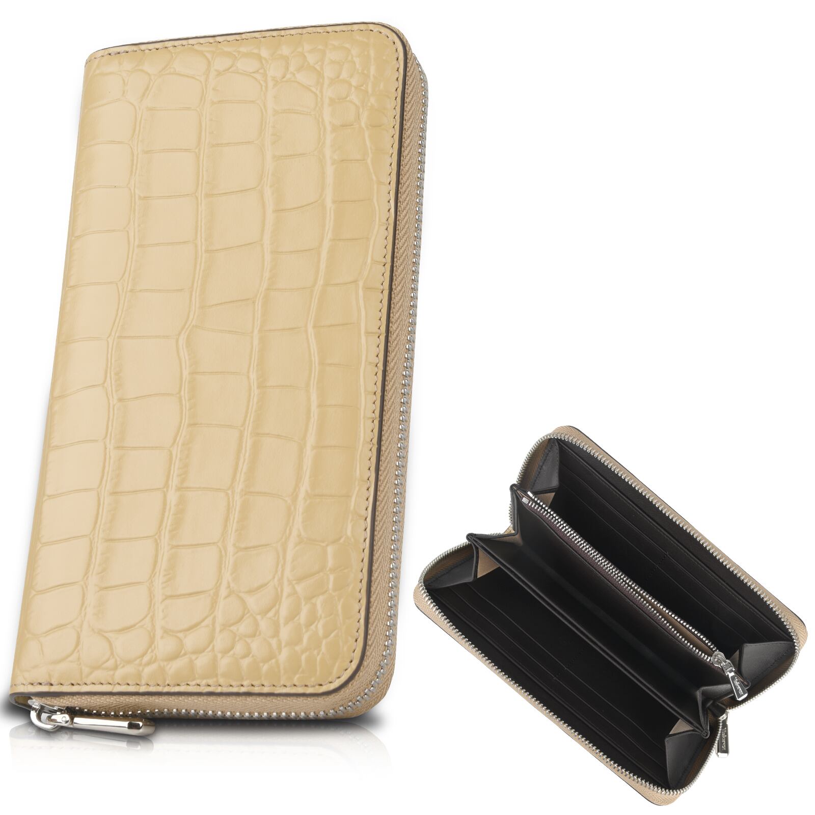 バイカラークロコダイル調長財布 ベージュ×ブラック