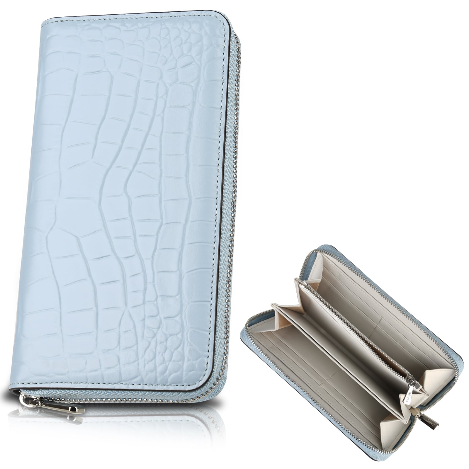 バイカラークロコダイル調長財布 ペールブルー×ホワイト