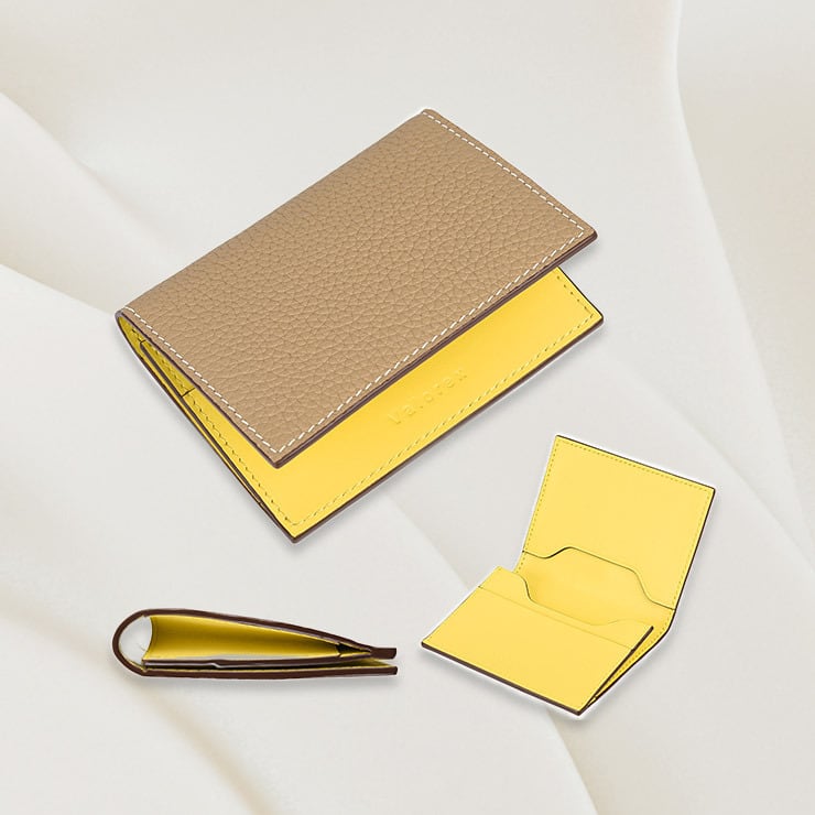 【名刺ケース】 エプソンレザー ベージュ×イエロー